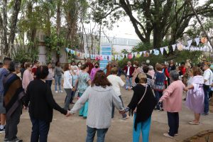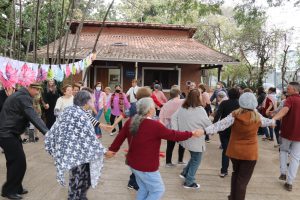 “Assumi a coordenadoria da Chácara do Idoso em agosto de 2021, logo após um longo período fechada, em razão da pandemia. E, naquele momento, notei que muitas pessoas estavam triste, por infelizmente ter perdido um familiar ou amigo próximo. Então, pensamos em como fazer para alegrá-las”, conta o coordenador Sérgio Marcelo Soler Sauer. Ao pesquisar entre os frequentadores, logo descobriu que um dos momentos mais aguardados pelo grupo era a festa dos aniversariantes do mês. E, conversando com a equipe, pensaram em formas de melhorar, ainda mais, o evento, quando surgiu a ideia da festa temática. Assim, praticamente todas as atividades da Chácara são, atualmente, uma espécie de preparação para a festa. “São eles que cuidam da decoração, produzem peças de artesanato voltadas ao tema, como foi agora sobre a temática do inverno, fazendo xales e cachecóis. Até a ginástica é uma forma de estarem mais fortes e prontos para encarar as atividades da festa, como a dança. Posso dizer que, hoje, o que dá o tempero especial à Chácara do Idoso é a festa temática”, ele conta.