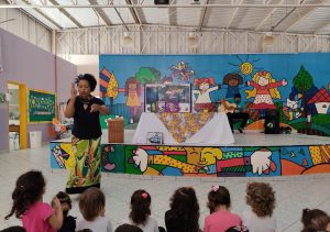 No Jardim Montreal, na Zona Oeste de Sorocaba, as crianças do CEI-85 “Maria Regina Antonioli Godoy” ficaram surpresas com o talento da auxiliar de Educação Joelma Reis na contação de história “As tranças de Bintou”. Os pequenos interagiram cantando e se divertindo muito.