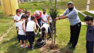 Foram plantadas mudas de palmeira, sapucaia, goiabeira, amoreira, aroeira e ipê. “Além de, no futuro, proporcionar sombra e aumentar o contato das crianças com a natureza, a ação teve como objetivo estimular a consciência ambiental de todos os envolvidos”, explica o diretor da unidade, Daniel Merlin.
