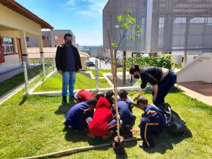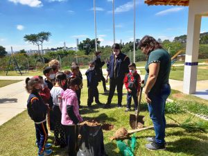Ainda, na E.M. “João Batista Larizzatti Júnior”, no Altos do Ipanema, as crianças participaram do plantio de mais de 30 mudas de árvores na ação realizada em parceria com a Secretaria do Meio Ambiente, Proteção e Bem-Estar Animal (Sema).