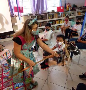 “O mês de outubro, em nossa escola, é cheio de cores, encanto e amores. O intuito foi promover às crianças a apreciação estética, o resgate da tradição oral, a leitura de histórias e o contato com o recurso do teatro de sombras”, conta a orientadora pedagógica e idealizadora do projeto, Priscila Borges Ribeiro Oliveira. “O momento foi recheado de emoção, que ficou notável nos olhinhos marejados, nos sorrisos, mesmo que cobertos pelas máscaras, mas percebidos pelos corações sensíveis, pois a hora da história trouxe um carinho para a alma”, completa.