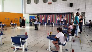 É o caso da E.M. “Professora Ana Cecília Falcato Prado Fontes”, no Jardim Renascer, na Zona Norte da cidade. Em vários dias, a equipe escolar reuniu familiares e estudantes para uma série de exercícios. Com o projeto intitulado “Sondagem Presencial”, foram promovidos vários momentos de socialização entre os alunos e a equipe docente. “A escola abriu suas portas para receber os alunos, com todo carinho e atenção, de acordo com todos os protocolos preventivos à pandemia necessários”, comenta a diretora da escola, Gilvonete Shimitz.