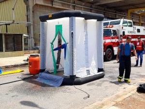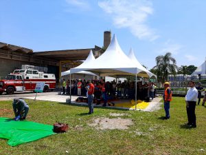O treinamento começou às 10h e avançou até as 11h, reunindo um total de 35 participantes, incluindo também equipes da Brigada de Incêndio da empresa, Corpo de Bombeiros, da Escola de Grau Técnico e do Plano de Ação Mútuo (PAN de Sorocaba). A Defesa Civil de Sorocaba participou com os agentes Valério Spartaco de Almeida e Cinara Alves Souza Baena.