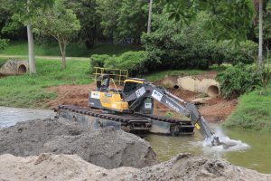 A ampliação do desassoreamento do trecho urbano do Rio Sorocaba acontece, no ponto atual, desde o início de setembro passado. A expectativa é que entre 15 mil e 20 mil metros cúbicos de sedimentos sejam retirados do rio, no total. A obra é executada em parceria com a Geratriz Construtora, oriunda de medida mitigadora, no valor de R$ 400 mil. “Os trabalhos começaram pela margem direita e, agora, prosseguem pela margem esquerda, onde há acúmulo de banco de areia e o acesso a máquinas é mais fácil, minimizando qualquer tipo de impacto”, disse o diretor-geral do Saae/Sorocaba.