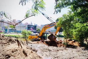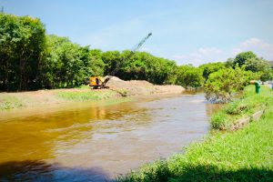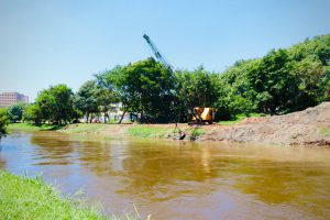 A Prefeitura de Sorocaba e o Serviço Autônomo de Água e Esgoto (Saae) seguem a todo vapor com as obras de desassoreamento em um segundo ponto do Rio Sorocaba, mais especificamente nas proximidades da Ponte Radial Norte, na região do Jardim Brasilândia, contando também, agora, com a chegada de uma segunda draga (dragline) para a otimização dos trabalhos.