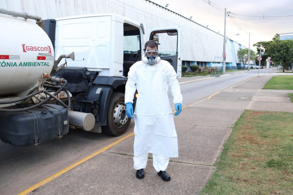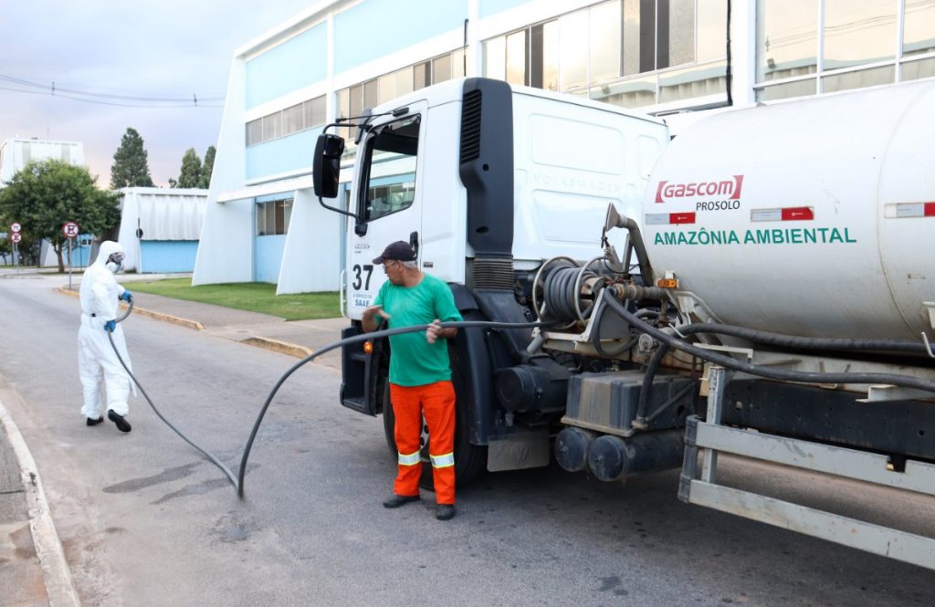 No trabalho desenvolvido a equipe destacada utiliza um caminhão-tanque especialmente preparado e Equipamentos de Proteção Individual (EPIs), incluindo luvas de nitrila, respirador semifacial com cartucho químico, bota de PVC, óculos de proteção, macacão contra respingos de produtos químicos e avental, permitindo assim que os servidores envolvidos executem com segurança a lavagem das fachadas e entorno das unidades de saúde, incluindo ruas, calçadas e rampas de acesso, aplicando o hipoclorito por meio de mangueira também específica, visto que o produto possui propriedade corrosiva.