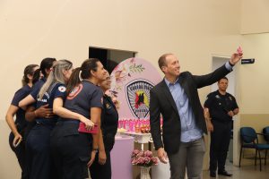 O prefeito Rodrigo Manga, acompanhado do secretário da Sesu, Alexandre Caixeiro, e do Comandante da GCM, Davi Dutra, participou da solenidade, conversou e fez fotos com as GCMs. “É uma alegria muito grande estar aqui. Fiz questão de vir, mesmo com a agenda corrida, para mostrar o meu reconhecimento, respeito e carinho por todas vocês, que se dedicam à população sorocabana, com todo amor, realizando um papel fundamental. Parabéns a todas”, declarou o chefe do Executivo.