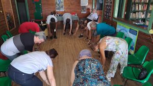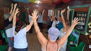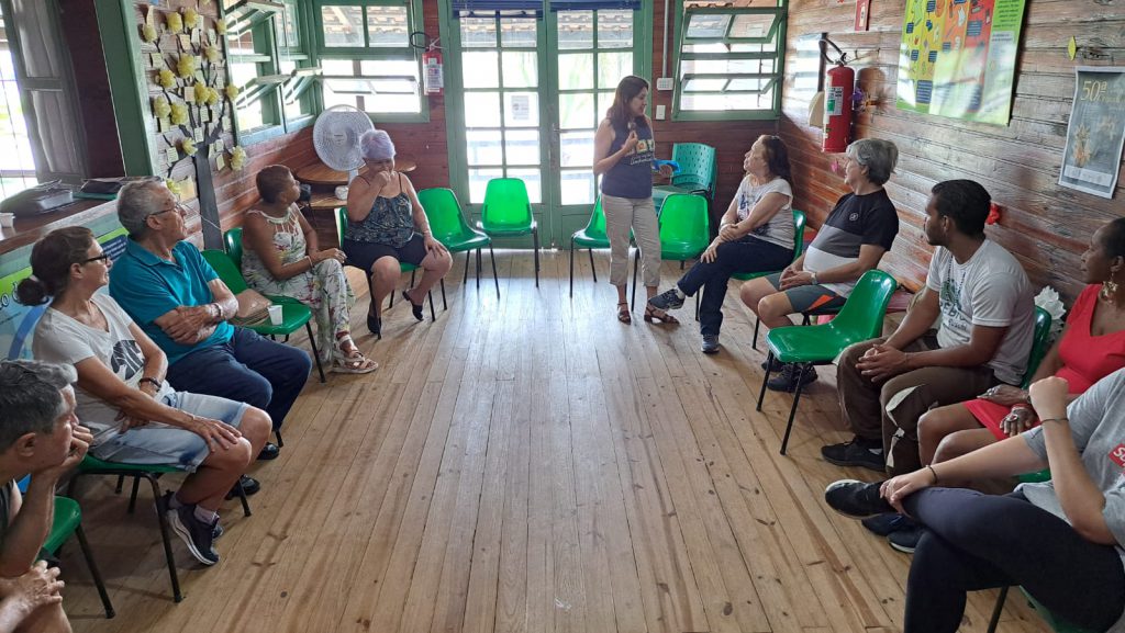 Para dar início à programação, a equipe de Educação Ambiental da Sema realizou o Alongamento dos Biomas, com uma série de movimentos relacionados às características dos biomas brasileiros. Na sequência, de forma lúdica, utilizando figuras de revistas, cada idoso teve a oportunidade de relembrar a sua primeira vez em diferentes situações da vida, como a primeira vez que foi à praia, a primeira casa que morou, primeiro animal de estimação, primeiro sapato, entre outras. Para encerrar, os integrantes do “Roda Viva” participaram da dinâmica “Baralho das Emoções”, com perguntas sobre a atual fase da vida, seja do lado, espiritual, profissional ou emocional, com o intuito de promover a reflexão entre eles.
