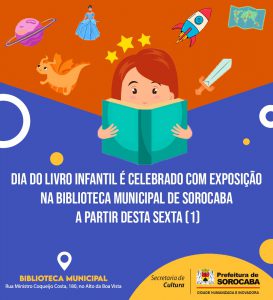 Para comemorar o Dia Internacional do Livro Infantil (2 de abril) e o Dia Nacional do Livro Infantil (18 de abril), a Prefeitura de Sorocaba, por meio da Secretaria de Cultura (Secult), oferecerá, a partir desta sexta-feira (1), uma exposição gratuita na Biblioteca Municipal “Jorge Guilherme Senger”, localizada no Alto da Boa Vista.