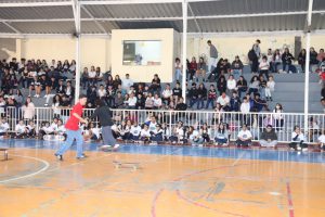 Para comemorar o Dia Mundial do Skate, celebrado na quarta-feira (21 de junho), a E.M. “Matheus Maylasky” sediou um evento muito especial. Para isso, convidou o professor Bruno Eli de Oliveira e alunos da E.M. “Maria Domingas Tótora de Góes”, cujos estudantes das turmas do 4º e 5º ano integram o projeto “Eu Pratico Esporte Educacional Escolar” nessa modalidade esportiva, para apresentarem-se na quadra, fazendo diferentes manobras e performances.