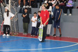 Na ocasião, também foi feita uma homenagem à skatista sorocabana Nathália Maria Apolinário Cafisso, de 12 anos. Apesar da pouca idade, ela já é um expoente nesse esporte, estando ranqueada em terceiro lugar no Circuito Paulista de Skate, etapa obrigatória para quem pretende disputar o Campeonato Brasileiro. “Eu comecei a praticar skate no dia 12 de outubro de 2020, incentivada pelo meu priminho, Rafael. Ele pediu um skate de presente, para começar a praticar, e eu também me interessei e pedi a mesma coisa. Então, nós começamos juntos”, contou Nathália. E sobre a homenagem ela revela que foi uma grande surpresa. “Fiquei muito feliz, porque é uma coisa que eu gosto muito, um sonho, e acho muito legal estar inspirando outras pessoas também. Acho muito bom a escola poder dar esse incentivo”, enfatizou a skatista.