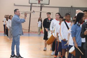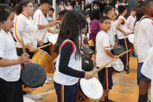 Na sequência, também houve a apresentação da fanfarra da E.M. “Matheus Maylasky”, que voltou às atividades neste ano, assim como em outras escolas da rede municipal, como parte do projeto Educasom.
