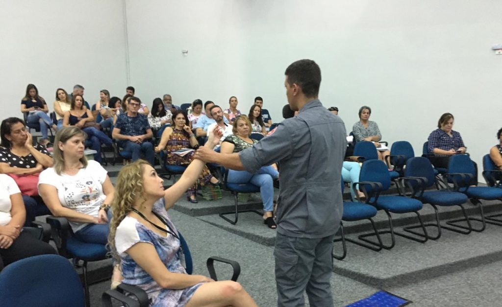 Divididas em duas etapas, as formações realizadas pelo Cabo Paes, do Corpo de Bombeiros, atenderam grupos de diretores de escolas com Ensino Fundamental e, posteriormente, diretores de unidades com Educação Infantil.
