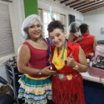 A voluntária Máxima se dispôs a fazer a maquiagem das idosas e, além das músicas e danças, todos puderam desfrutar dos comes e bebes compartilhados na festa.