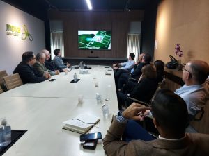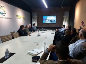 Durante a visita, os representantes de ambas as empresas foram recepcionados pelo presidente do PTS, Nelson Cancellara, e pelo diretor executivo da Agência Inova, André Santos, ocasião em que assistiram a um vídeo institucional do PTS e receberam informações sobre sua estrutura e todo o seu ecossistema, que abriga, atualmente, 40 empresas na área interna, outras sete implantadas ou em fase de implantação na área externa, 37 startups, 10 universidades residentes e quase 400 profissionais atuando em sua estrutura. Logo após, percorreram o PTS para conhecer, in loco, as empresas e instituições ali instaladas.