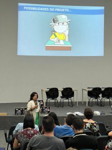 O professor Luiz Araújo apresentou o Programa Menteinovadora, que embasa o trabalho a ser desenvolvido com os recursos do Mind Lab e a professora Margil Feller abordou os aspectos pedagógicos proporcionados pelo Projeto Maluquinho por Robótica.