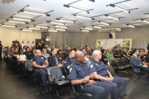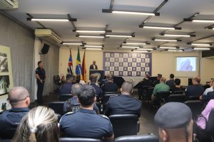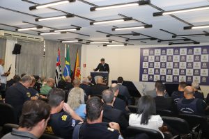 Sorocaba foi sede, nesta segunda-feira (19), do 3º Encontro de Comandantes das Guardas Civis Municipais (GCMs) da Macrorregião de Sorocaba, no Salão de Vidro do Paço Municipal. A iniciativa, que não ocorria desde 2016, foi realizada pela Prefeitura de Sorocaba, por meio da Secretaria de Segurança Urbana (Sesu), e contou com a presença de representantes de 22 cidades, incluindo três da Grande São Paulo. Na ocasião, foram discutidas ações e projetos em comum, como a operacionalização de canais de radiocomunicação e videomonitoramento, integrados regionalmente.