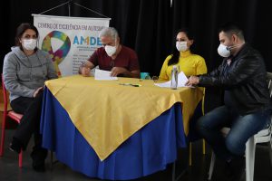 Uma reunião realizada na Creche Especial Maria Claro, na manhã desta terça-feira (17), marcou o encontro entre membros do Conselho Municipal dos Direitos da Criança e do Adolescente (CMDCA), ligado à Secretaria da Cidadania (Secid), e as cinco instituições que receberão verba do Fundo Municipal dos Direitos da Criança e do Adolescente (Funcad) destinada a projetos com foco na pessoa com deficiência, os quais foram selecionados a partir do Edital 003/21, publicado no dia 20 de julho. Na oportunidade, os representantes dessas instituições assinaram o Termo de Colaboração, com o qual assumem o compromisso de realizar as ações propostas e apresentadas mediante o edital de chamamento.