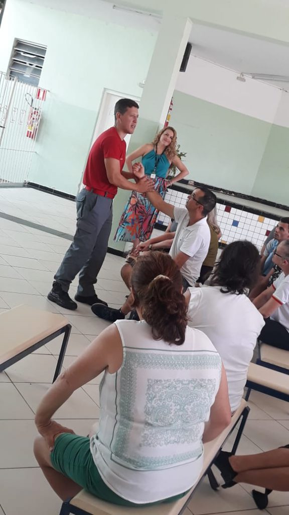 Ao todo, foram capacitados 30 profissionais, entre professores, estagiários, cuidadores de crianças com necessidades especiais, equipe gestora, inspetores de alunos e funcionários terceirizados da merenda e limpeza.