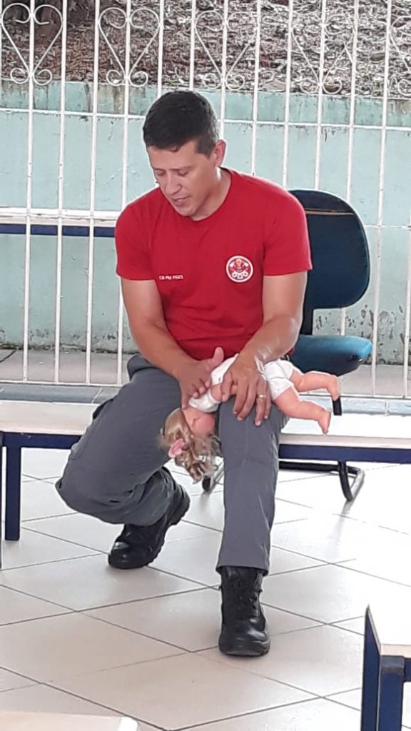 A equipe escolar da E.M. “Quinzinho de Barros”, na Vila Hortência, recebeu nesta segunda-feira (16) uma formação sobre primeiros socorros com o Cabo Paes, do Corpo de Bombeiros de Sorocaba.