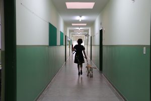Na E.M. Prof.ª Julica Bierrenbach, no Jd. Cruzeiro do Sul, Zona Leste, a rotina dos alunos ganhou toque especial a mais, há cerca de três meses, quando a vice-diretora, Elaine Mendes da Silva, passou a ter a companhia, no ambiente da escola, de Benjamin, um labrador da raça Retriever ainda filhote, que está sendo treinado para assumir a função de cão-guia.