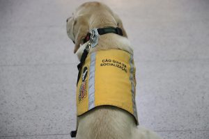 Por onde passa, Benjamin chama a atenção, especialmente das crianças. No entanto, não é sempre que está disponível para os afagos e brincadeiras. Em seu papel como guia, o labrador não pode se distrair. Como ele irá se tornar os “olhos” de alguém que necessitará dessa função para andar, muitas vezes, por lugares desconhecidos ou em situações de risco potencial, como a travessia de uma rua movimentada, o cão-guia precisa estar muito atento para saber proteger seu tutor. Isso explica porque, durante sua tarefa como condutor, não pode interagir com brincadeiras. A regra vale durante todo o tempo em que está com sua guia especial, que também ajuda a identificá-lo.