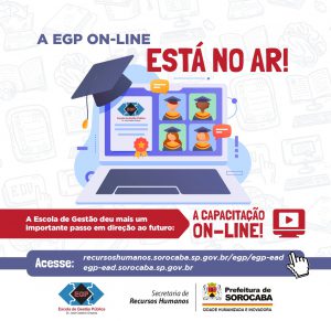 A Prefeitura de Sorocaba, por meio da Secretaria de Recursos Humanos (Serh), via Escola de Gestão Pública “Dr. José Caetano Graziosi” (EGP), lançou, na última semana, a plataforma de capacitação “EGP On-line”, proporcionando uma experiência educacional envolvente, prática e moderna, a partir da qual os servidores poderão aprimorar os conceitos teóricos para sua aplicação no dia a dia de trabalho.