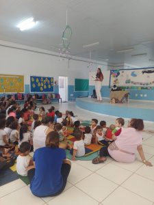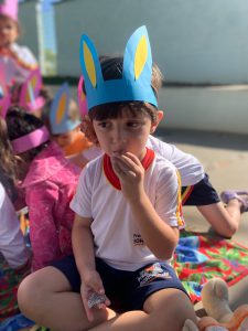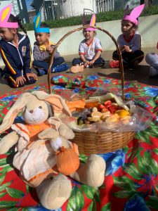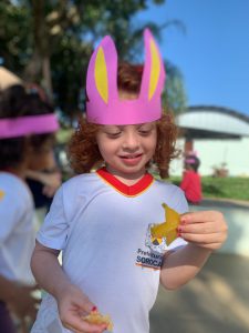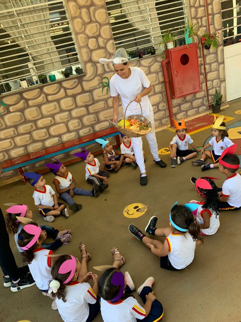 Completando a brincadeira, a diretora da unidade, Andrea Costa, e a professora Fabíola Parrilo organizaram, na sequência, um piquenique com as frutas, combinado ao projeto “Lugares de Ler”. O livro escolhido para a contação de história foi “O segredo do coelho”, de J. A. Rowe. Além de brincadeiras e muitas músicas, com a presença do “Coelho da Páscoa”. Durante as ações, além disso, os temas trabalhados com as crianças foram a amizade, a partilha e solidariedade.