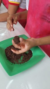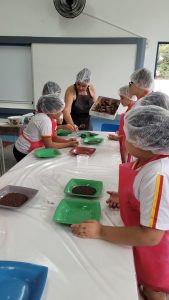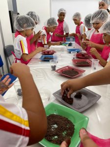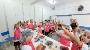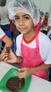 Na E.M. “Edward Frufru Marciano da Silva”, no Jardim Botucatu, na Zona Norte, os alunos se reuniram no Espaço Maker da escola para realizar uma tarefa diferente: a produção de brigadeiros de banana. Além de os estudantes se deliciarem com a atividade, a escola ainda produziu, em parceria com a Seção de Apoio à Alimentação Escolar, um material sobre alimentação saudável, que foca nas propriedades oferecidas pelo cacau e traz a receita especial do brigadeiro de banana.