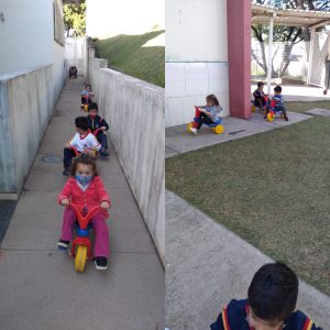 No CEI-108 “Antonio Bengla Mestre Filho”, uma das brincadeiras consistiu em explorar todos os espaços da creche. O passeio foi de velotrol, uma atividade que, além de divertir as crianças, favorece o desenvolvimento do equilíbrio e da coordenação motora. Enquanto isso, outra turminha dessa unidade pôde colocar as mãos na terra e exercitar a criação de uma horta. Além de ser uma atividade lúdica, acaba ensinando às crianças sobre a origem dos alimentos e incentivando-as a se alimentar de forma mais saudável, no dia a dia.