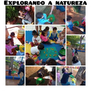 Exploração da Natureza foi um dos temas da Semana do Brincar em algumas escolas. No CEI-79 “João Tortello”, a turma da creche já adora brincar com elementos da natureza e pôde explorar um pouco mais ainda os elementos encontrados à sua volta, tais como folhas e pequenos galhos. Elas aprendem que, além de conter vida, esses itens devem ser tratados com cuidado e carinho, pois fazem parte do meio onde vivemos.