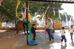 Fernanda Maria Oliveira Simões acompanhou o filho, Mário Luiz, de 4 anos, na atividade. “Achei ótima a ideia da escola. A brincadeira permite que as crianças interajam mais, inclusive com colegas de outras salas. Ele também gostou muito que eu vim. Nem contei antes para ele, para não ficar muito ansioso”, revelou.