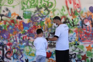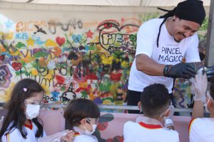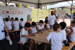 A ação aconteceu no Parque “Maestro Nilson Lombardi”, em um ambiente lúdico e criativo, que foi criado especialmente para o projeto “Pincel Mágico”, o qual reuniu atividades de pintura, grafite e escultura para crianças e adolescentes, de 4 a 14 anos.