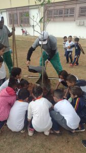 Para o plantio, a Sema providenciou toda a estrutura necessária, como a preparação dos berços, transporte e seleção das mudas, que são produzidas no Viveiro Municipal, além dos insumos e de tutores (bambus para suporte das mudas). Os profissionais da Secretaria do Meio Ambiente, Proteção e Bem-Estar Animal também apresentaram aos alunos o passo a passo para o plantio das árvores.