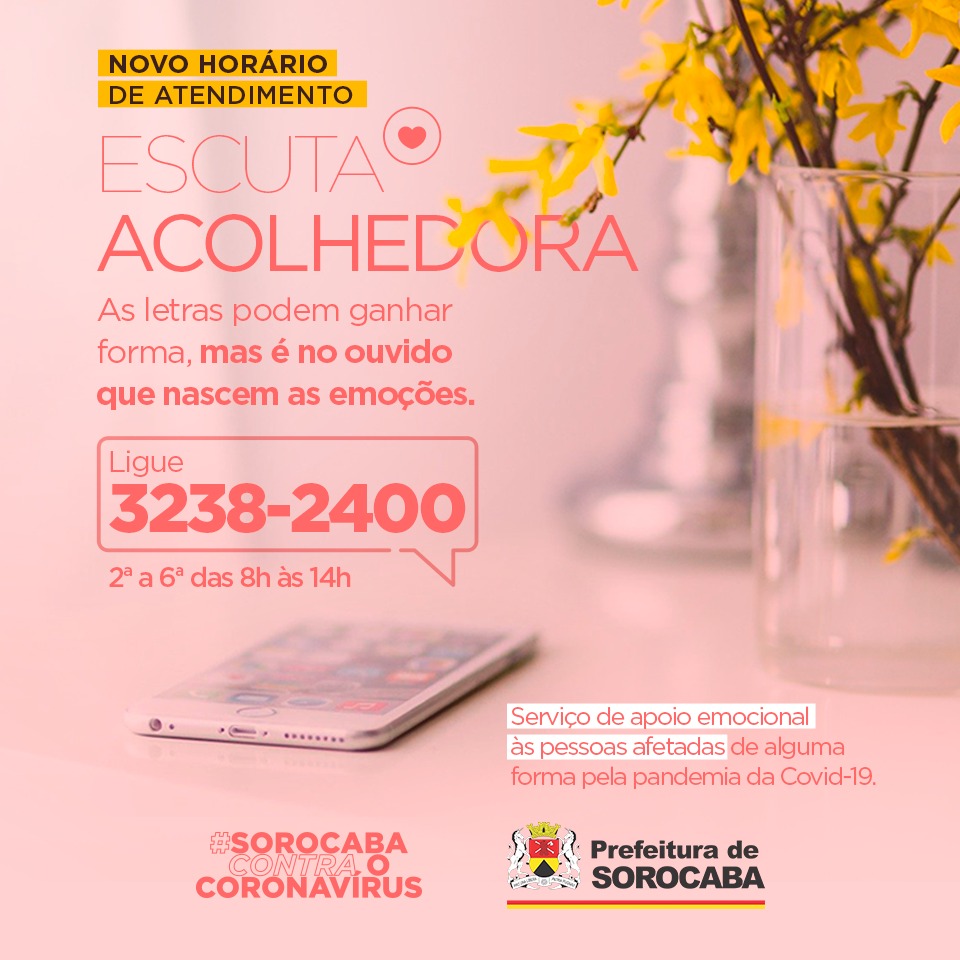 Segundo a Prefeitura de Sorocaba, a ‘Escuta Acolhedora’ é um trabalho liderado pela Coordenação de Saúde Mental do município, com apoio da Divisão de Educação em Saúde, através da Residência Multiprofissional de Saúde Mental com ênfase na Atenção Básica. O foco do projeto é oferecer apoio emocional à população em geral afetada pela Covid-19 e também aos profissionais da área de saúde que estão na linha de frente de combate à doença.