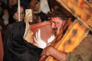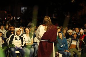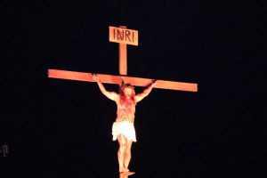 A seguir, houve também a Via Crucis, um momento bastante aguardado pelo público, que percorreu as ruas do bairro, ao lado dos artistas, que prosseguiram com a encenação do flagelo de Jesus. Essa etapa da apresentação mostra todo o calvário vivido por Cristo, do momento em que recebe a cruz e a carrega, até a sua crucificação e martírio, seguidos de seu sepultamento e ressurreição, ponto alto de toda a apresentação e que emocionou muito o público. Um show de luzes tornou esse auge ainda mais grandioso.