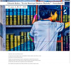 O projeto “Eduardo Kobra – Escola Municipal Matheus Maylasky” levou os estudantes das turmas dos 5ºs anos A, B e C da E.M. “Matheus Maylasky” a vivenciarem uma grande experiência sobre o renomado pintor brasileiro Eduardo Kobra.