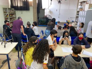 Os alunos foram desafiados a criar uma pequena animação sobre o tema meio ambiente e ecologia. “Surgiram ótimas ideias e foi um trabalho muito produtivo”, conta Helana Ferraz, do apoio técnico-pedagógico da Sedu.