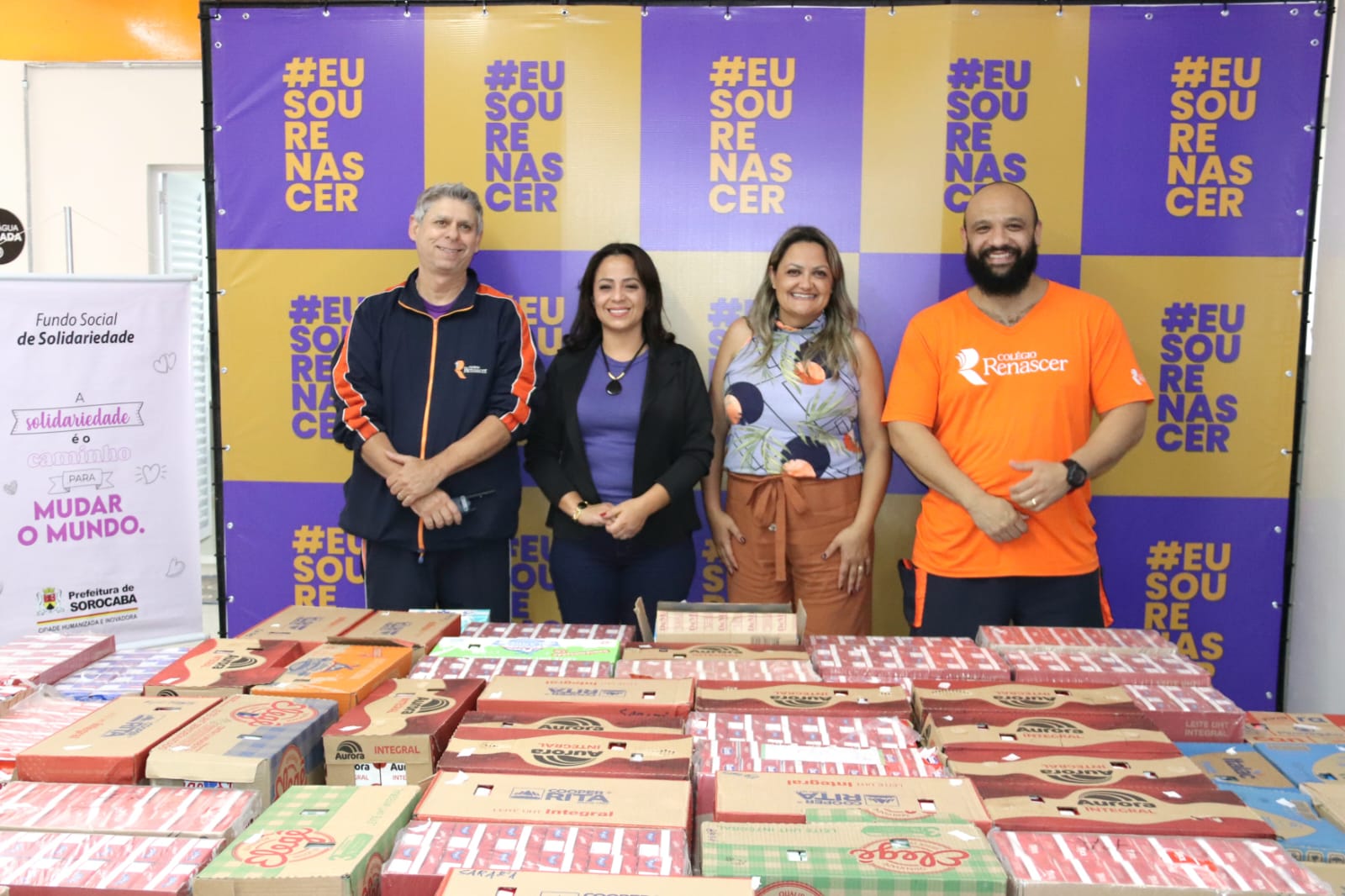 Uma competição realizada entre os alunos do Colégio Renascer arrecadou 4.400 litros de leite, que foram doados à campanha “A Fome não é Fake!”, do Fundo Social de Solidariedade (FSS) de Sorocaba. Toda a arrecadação foi entregue pelo professor responsável pelo projeto, Cláudio Ernani, à presidente do FSS, Rosangela Perecini.