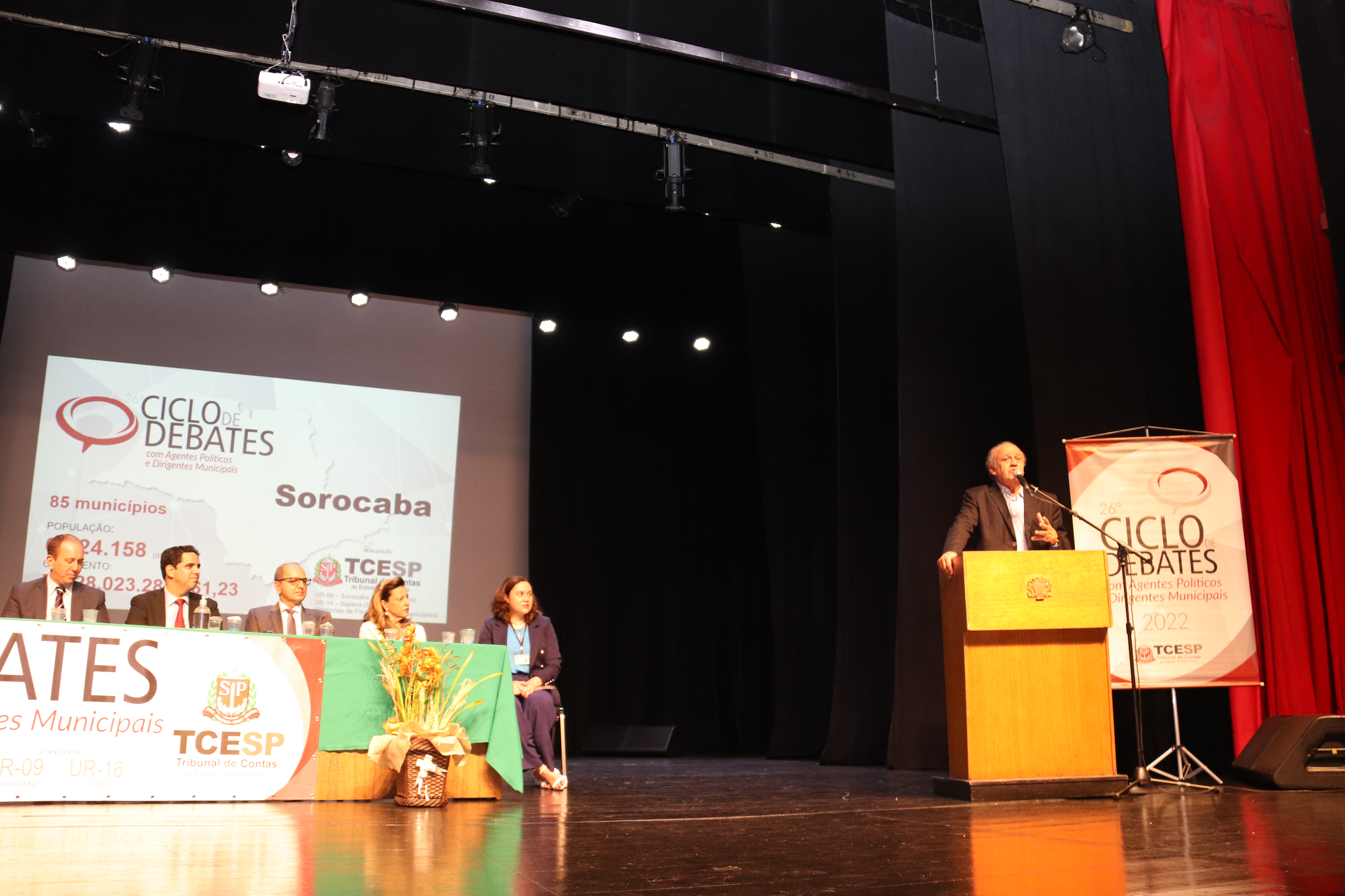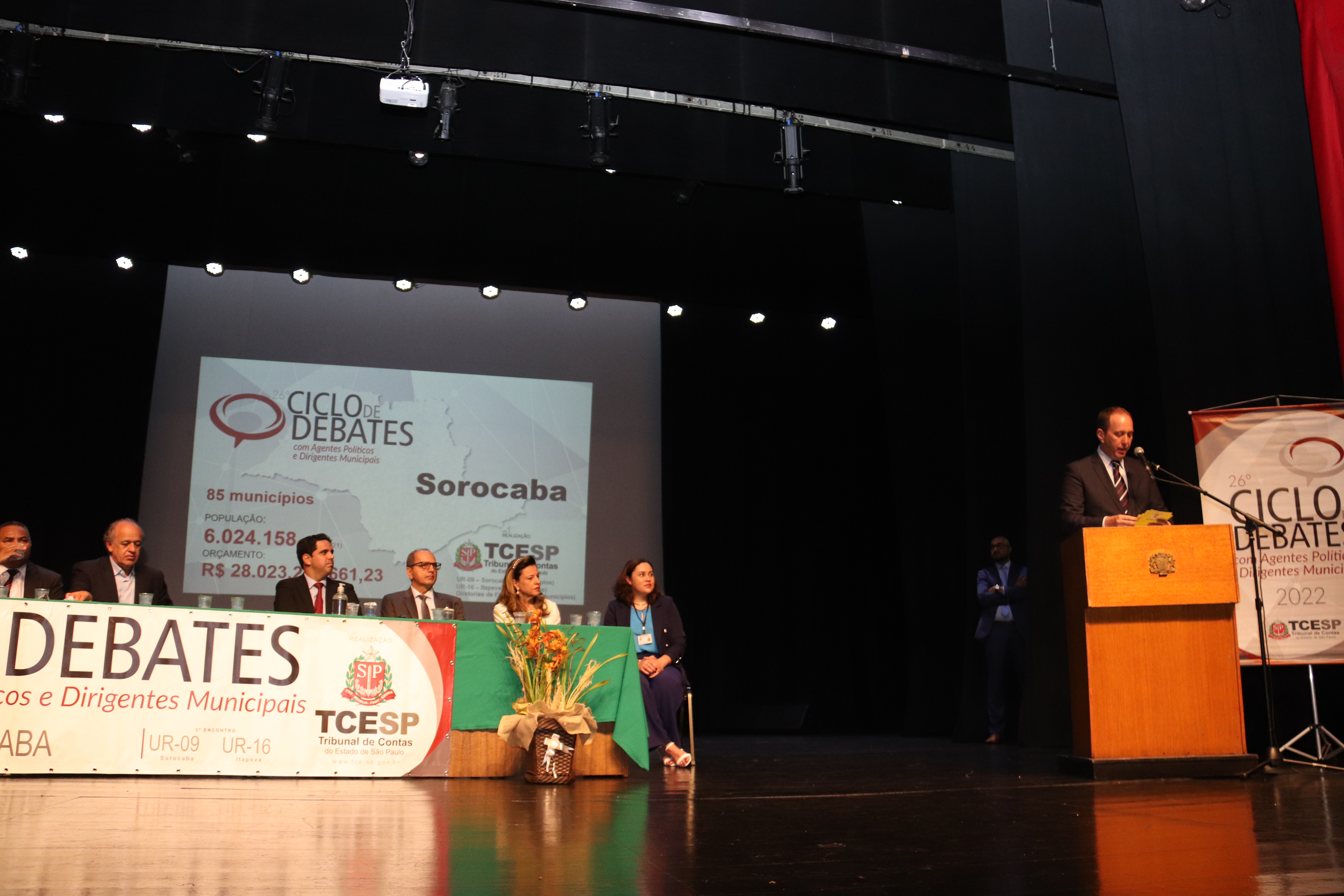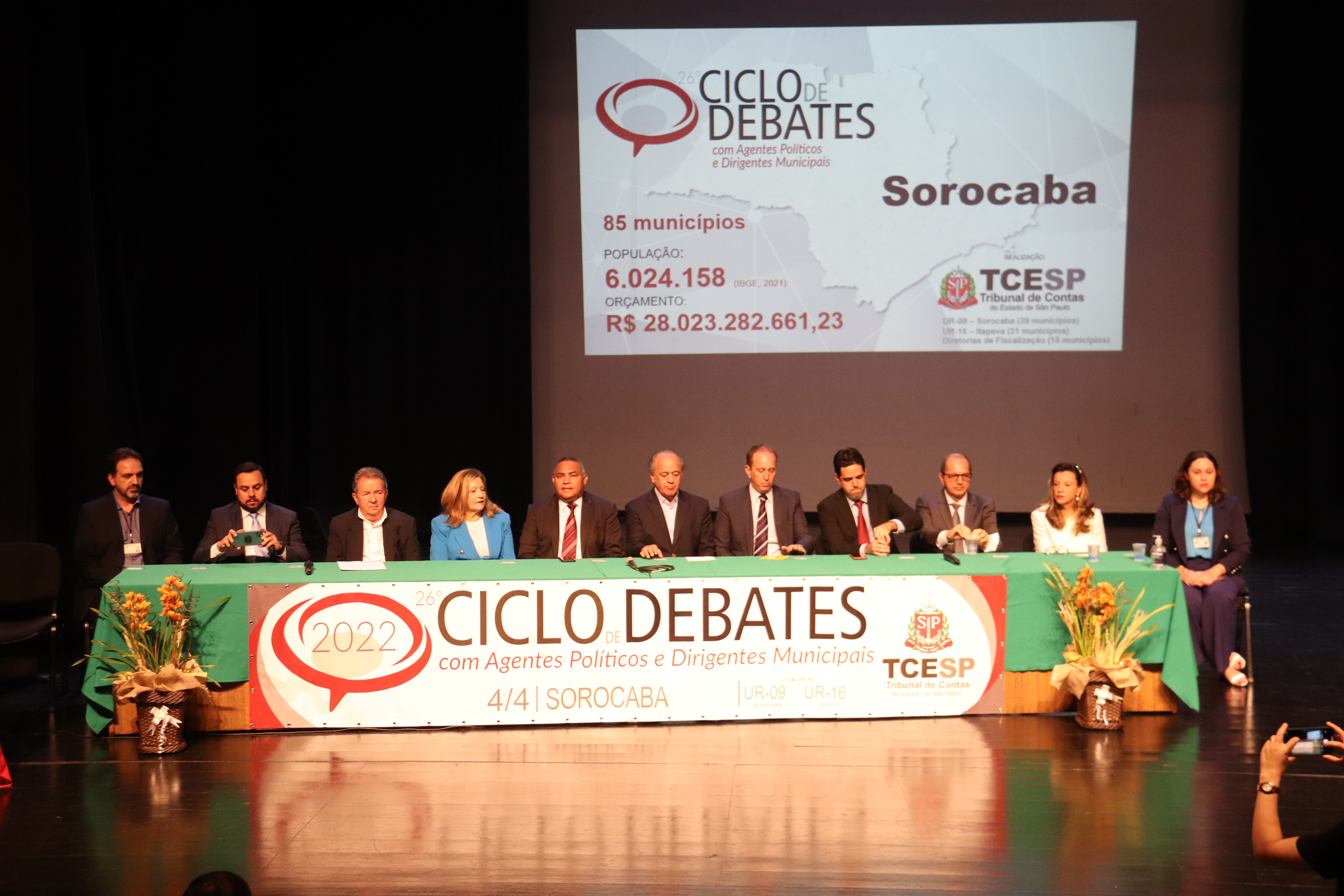 Sorocaba foi sede, nesta segunda-feira (4), do 3º encontro regional do 26º Ciclo de Debates com Agentes Políticos e Dirigentes Municipais 2022, evento do Tribunal de Contas do Estado (TCE) de São Paulo e que recebeu mais de 400 pessoas nas dependências do Teatro Municipal “Teotônio Vilela”. A iniciativa, que contou com o apoio da Prefeitura de Sorocaba, reuniu autoridades municipais de 85 cidades, das regiões de Sorocaba, Itapetininga, Itapeva e da Grande São Paulo.