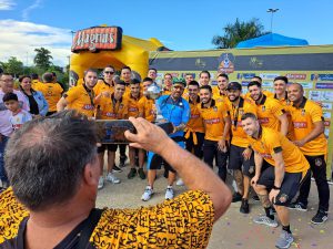 Em clima de grande festa do esporte, na manhã deste domingo (2), no Parque das Águas, a Prefeitura de Sorocaba recebeu, de forma simbólica, o troféu de campeão da Conmebol Libertadores Futsal 2024, das mãos dos jogadores Leandro Lino e Charuto, do Magnus Futsal Sorocaba.
