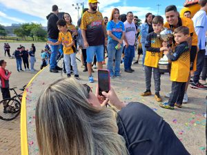 Quem levou o filho Gustavo, de 8 anos, ao evento comemorativo, foi o comerciante Jean Lucas Gomes, morador da Vila Jardini. “Ele é muito fã do time e sempre que posso levo o Gustavo ver os jogos da Magnus na Arena Sorocaba. Ele está realizado, já fez fotos com os jogadores. Ganhamos o domingo”, contou o pai.