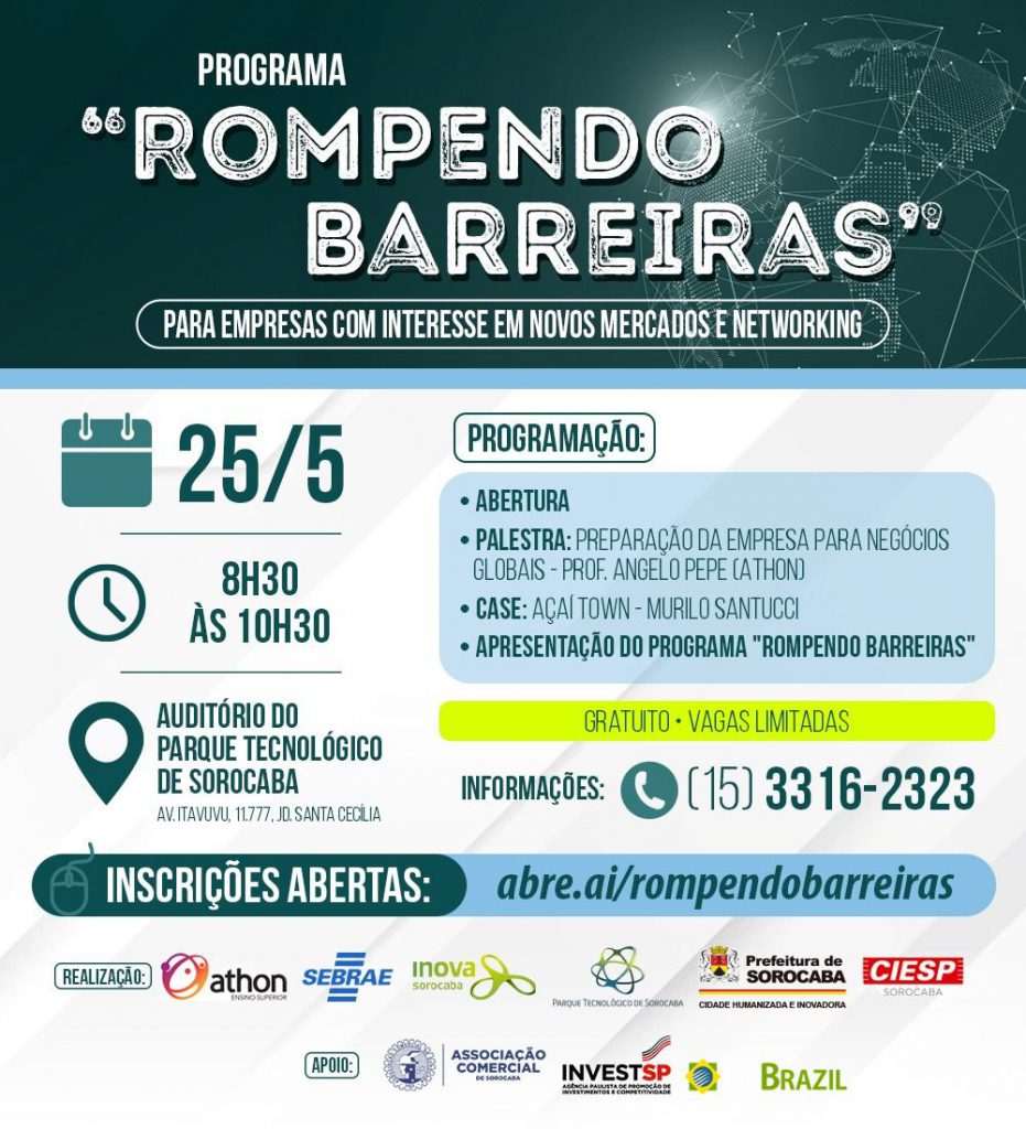 Evento “Rompendo Barreiras” prepara empresas para concorrência internacional a partir do dia 25/5