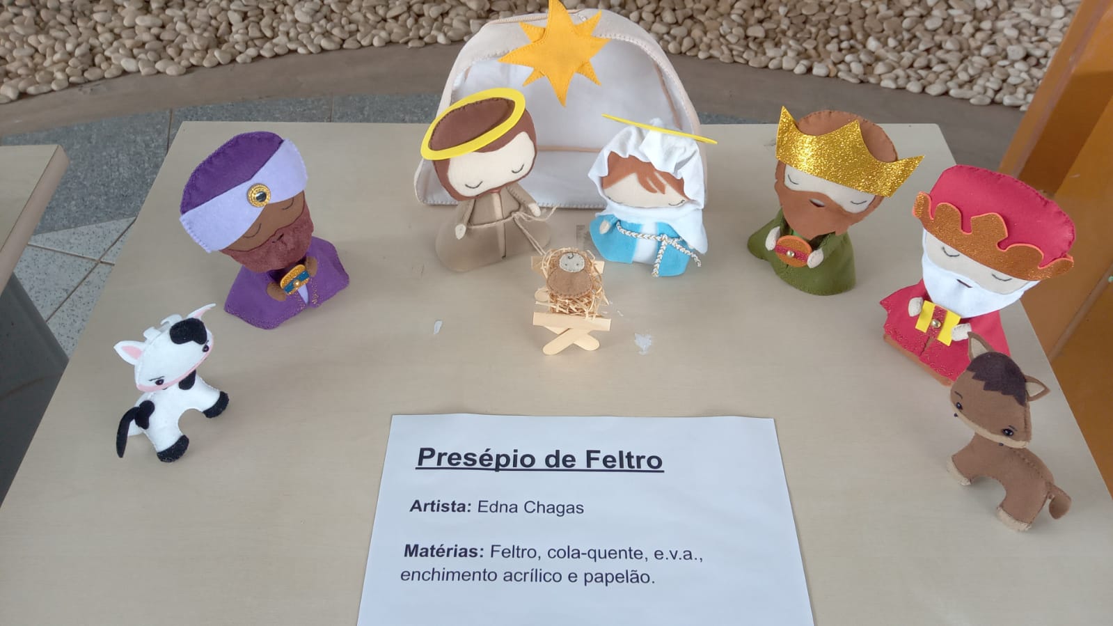 Na exposição, o público poderá conferir quatro tipos de presépios, feitos cada um por um artista da cidade, utilizando uma técnica diferente. Edna Chagas construiu um presépio de feltro. Sueli Moreno fez de amigurumi, com técnica de crochê. Marilda Corrêa produziu um presépio de bonecas Abayomi. Por fim, Alexandre Henrique confeccionou um presépio feito em EVA.
