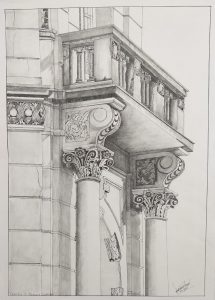O artista trabalhou no Centro da cidade por muitos anos, que propiciou a oportunidade de observar os ornamentos dos prédios. “Quando pude me dedicar com mais ênfase a essa minha paixão, não tive dúvidas. Passei a desenhar esses prédios antigos e seus detalhes arquitetônicos, que os prédios mais recentes não possuem”, declara.