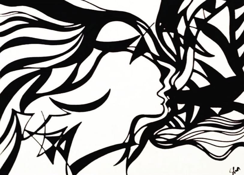 A série de obras que compõe a mostra foi produzida com a técnica caneta permanente sobre Canson, expressando a identidade artística de Sarah, por meio das linhas.