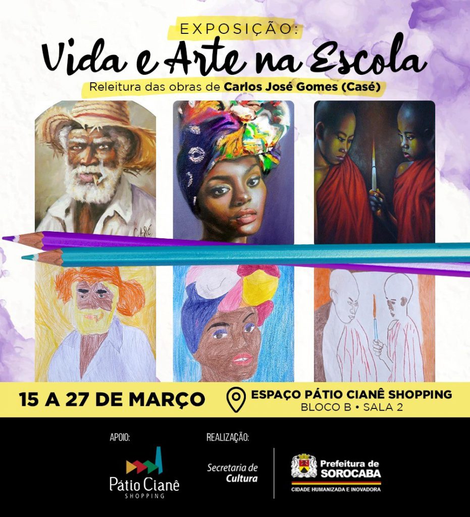 A população pode conferir, a partir desta terça-feira (15), a exposição “Vida e Arte na Escola – Releitura das obras de Carlos José Gomes (Casé)”, no Pátio Cianê Shopping. A atração gratuita poderá ser vista na Sala 2, no Bloco B do empreendimento, até o dia 27 de março.