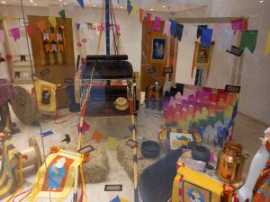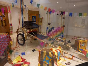 Os painéis que compõem a mostra são do historiador sorocabano José Rubens Incao. Já, as demais peças expostas pertencem à artista plástica Virgínia Simões, igualmente gentilmente cedidas para a exposição. Neste ano, a “Vitrine da Festa Julina” conta, também, com a disposição de uma charrete confeccionada pela Fábrica de São Roque, especialmente para a ocasião. Os elementos que compõem a mostra representam a data comemorativa com balões, comidas típicas, bandeirolas, entre muitos outros.