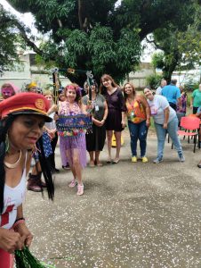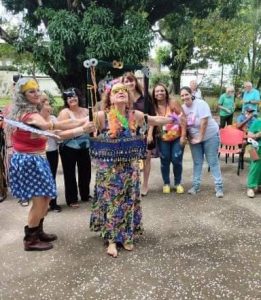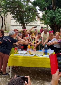 Em certo momento, a alegria foi embalada pela dança circular organizada pela professora e voluntária Sirley. Na sequência, houve a apresentação do grupo “Violeiros da Terra”, liderado pelo professor Demétrio. Em seguida, foi a vez da professora Bene apresentar as Marchinhas de Carnaval, regendo o coral “Vozes da Terra”, formado pelos idosos que participam das atividades da Chácara. A alegria das antigas canções fez com que ninguém ficasse parado.