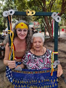 Entre os participantes, estava a Dona Mercedes, que escolheu a fantasia de “Mulher Maravilhosa” para festejar seu aniversário de 92 anos.